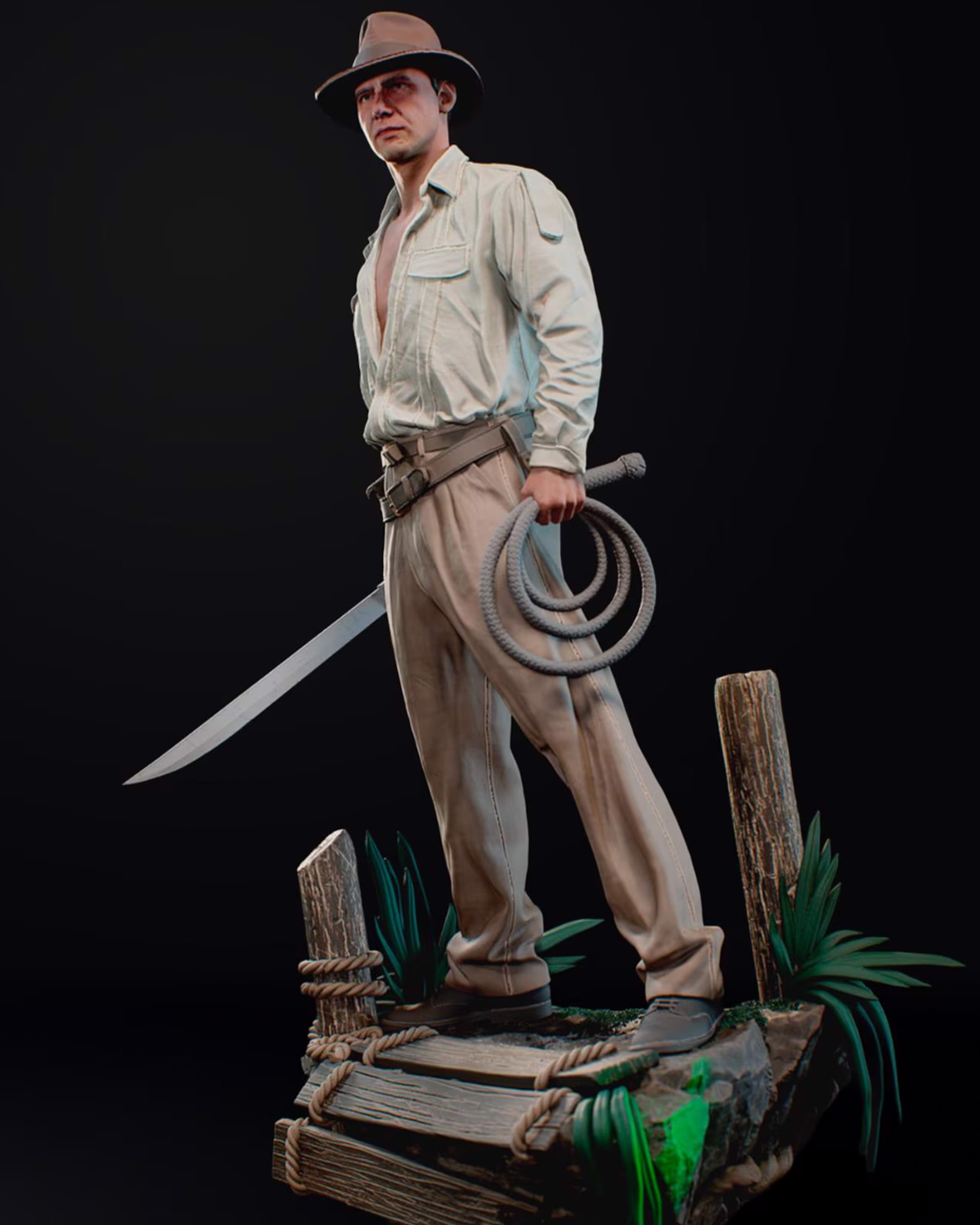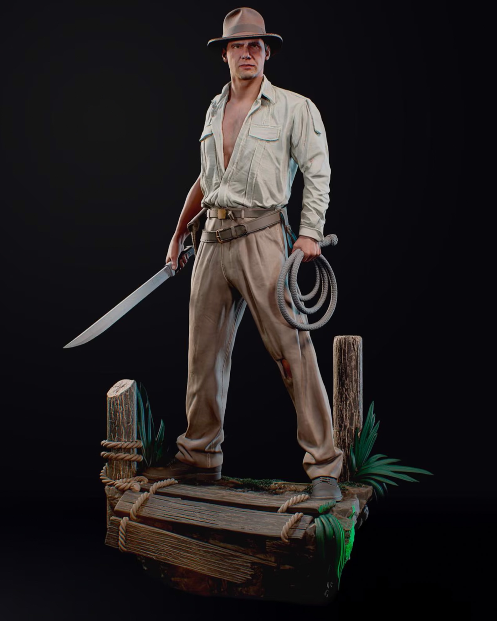 The facial features also reflect the rugged and determined look from the films. Furthermore, the folds in the clothing and the texture of the jacket, boots, and hat provide excellent opportunities for painting and weathering.