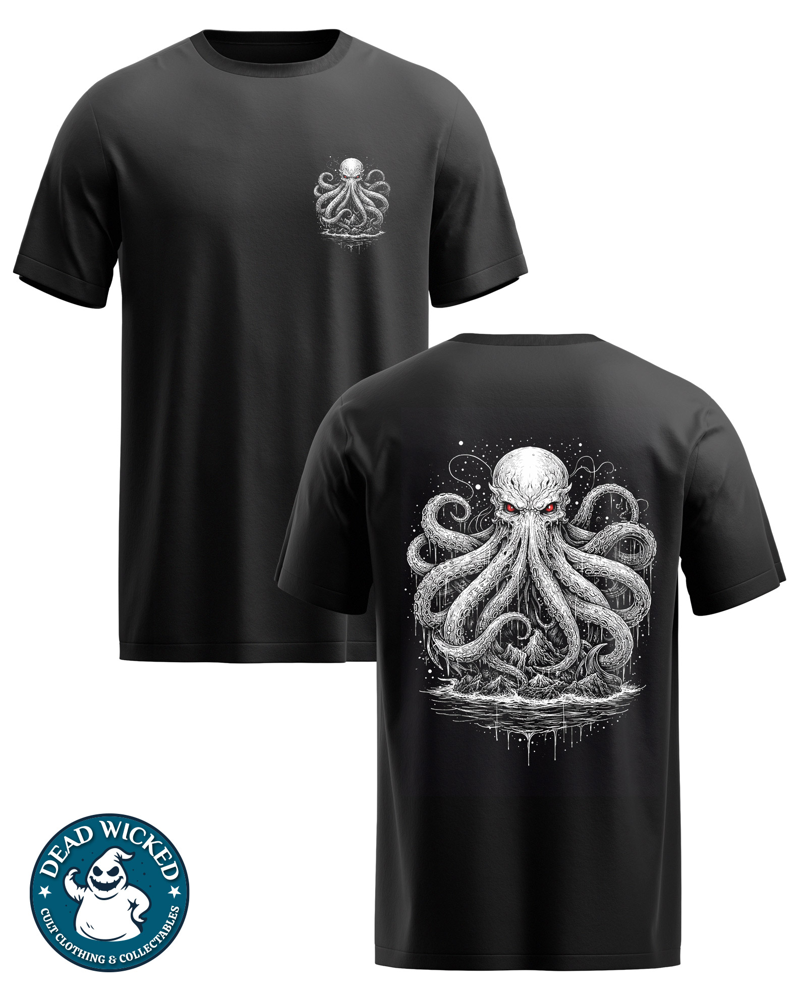 Fans of sea monsters and fantasy stories will instantly recognise the inspiration behind this design. However, the detailed illustration also gives the shirt a modern gothic feel. Therefore, it is perfect for anyone who enjoys mythical creatures, horror art, and dark graphic T-shirts.