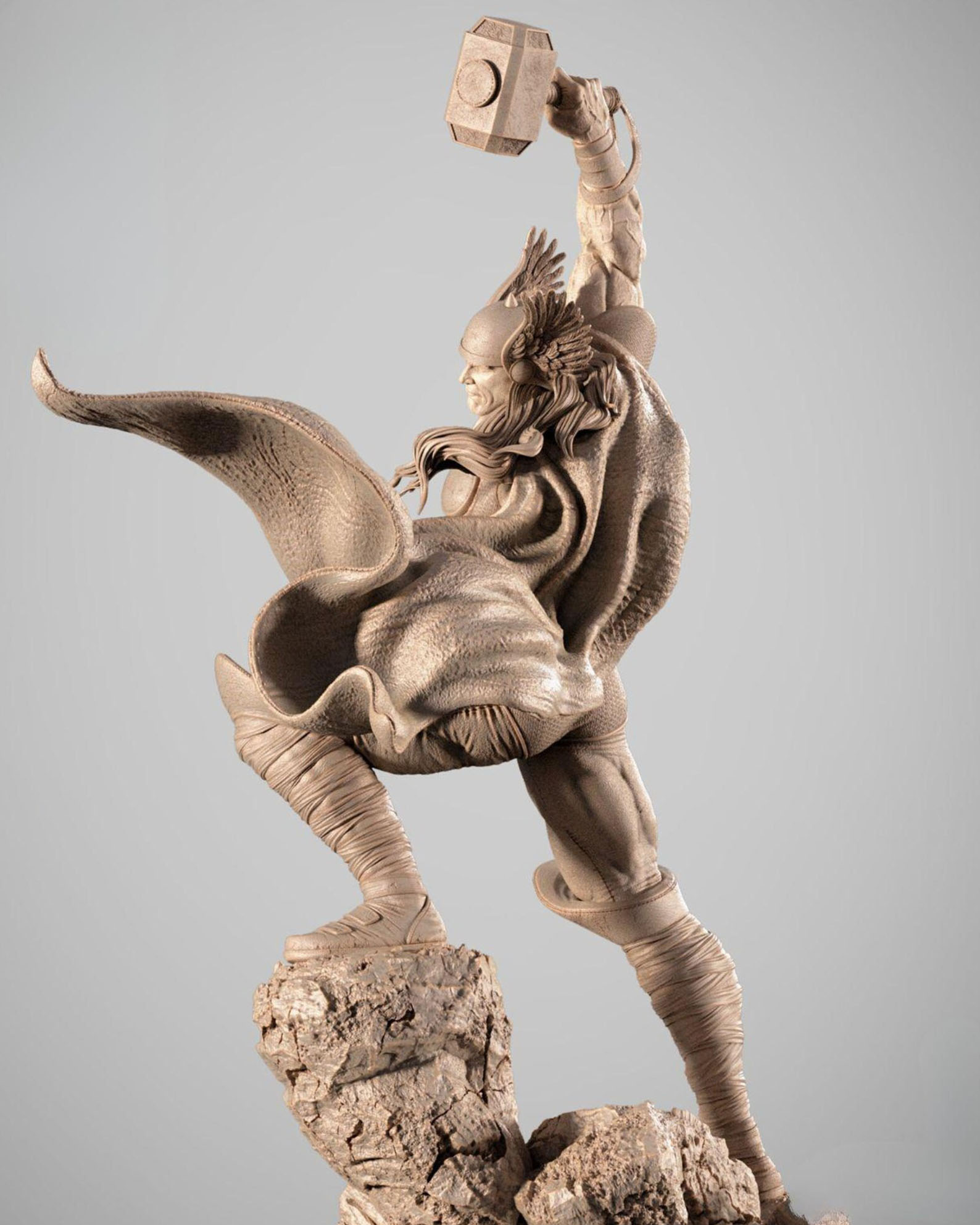 Meta Description: Thor Model Kit inspired by Marvel Comics. Highly detailed 3D printed display model with Mjolnir, cape, and Asgard base.